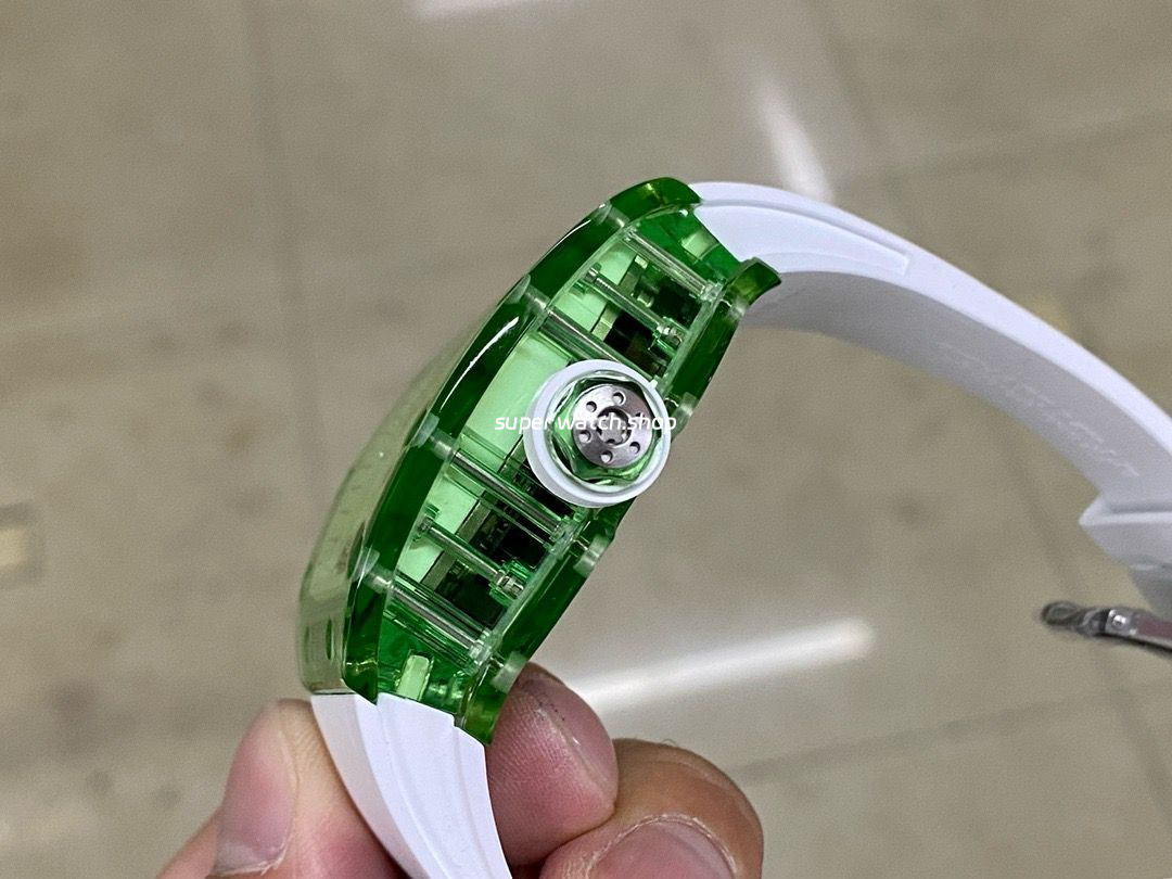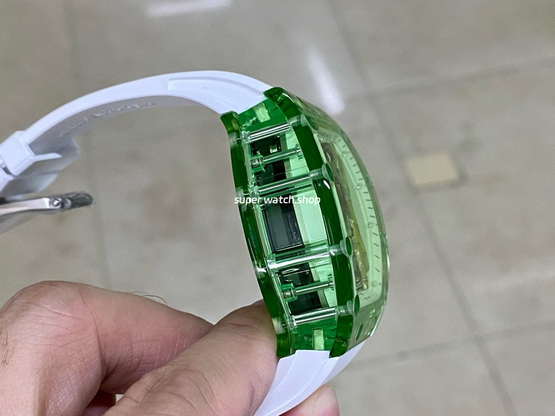 The curved crystal barrel case is designed with complex and difficult lines or angles. It has been tested countless times during processing and production, which brings huge challenges to the production. Its bezel, middle case and bottom cover are all made of crystal crystal material. It is inlaid with titanium alloy screws to achieve a perfect balance between surface and internal depth. The double hollow bottom plate allows the movement to be displayed from all angles.