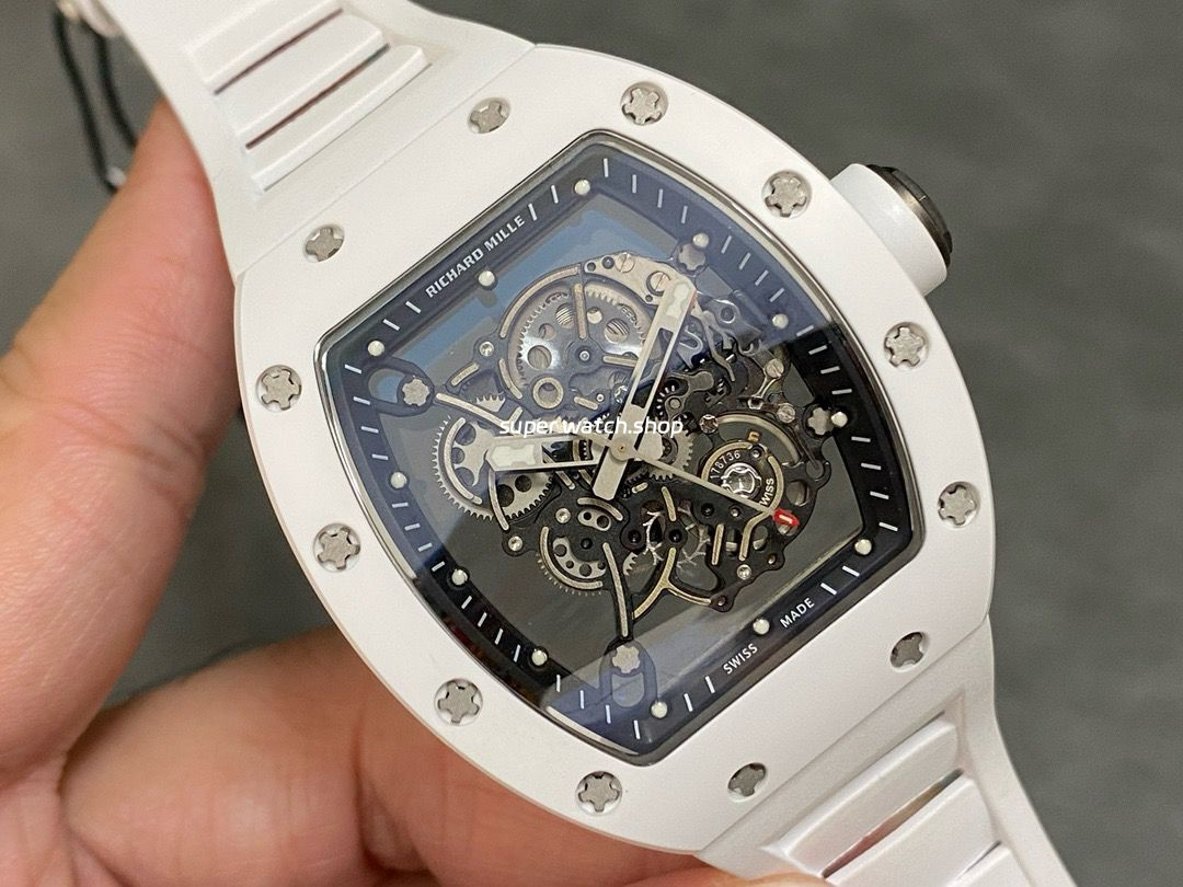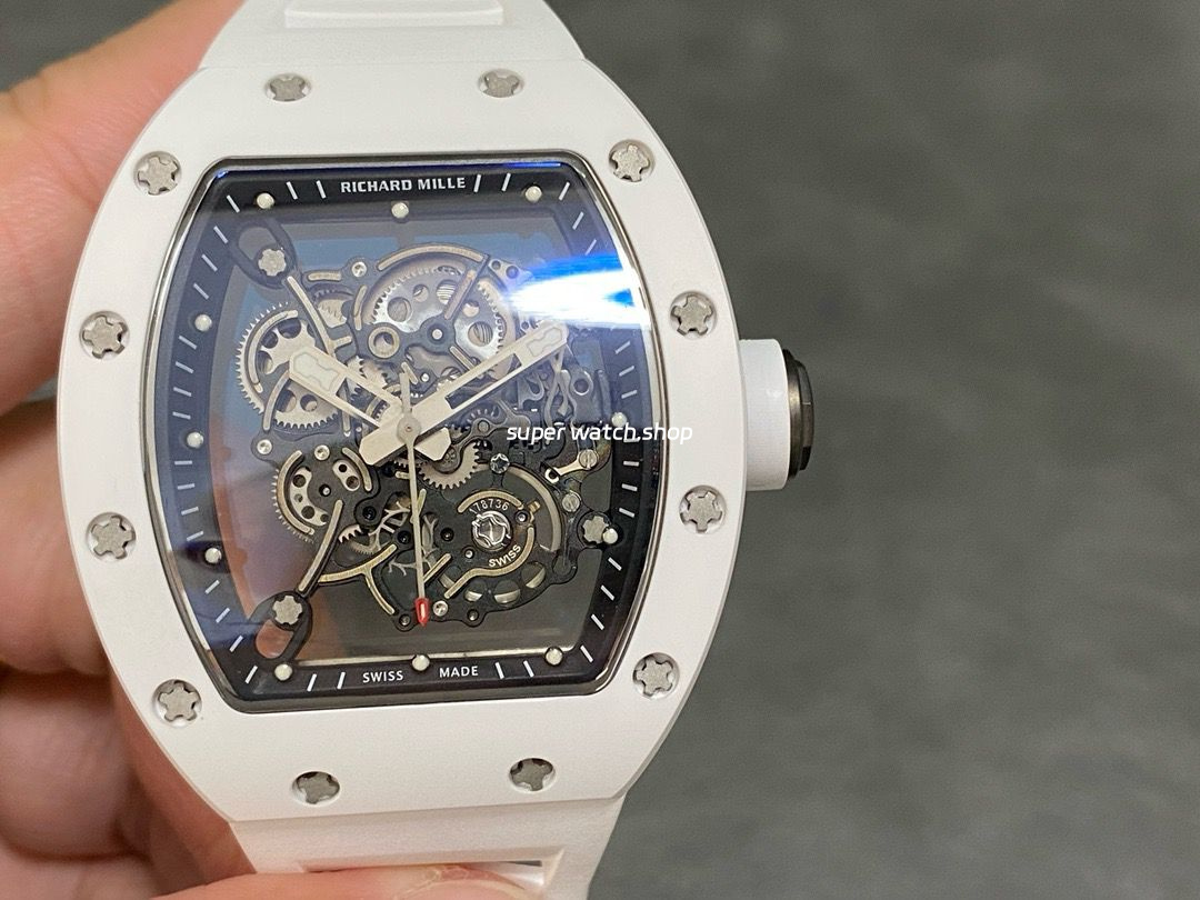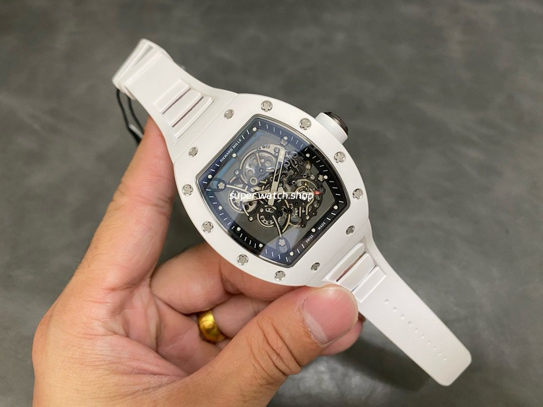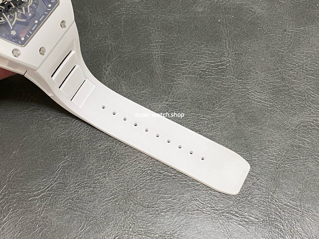 RM Factory Richard Mille RM 055 43mm White Ceramic White Rubber Strap Skeletonized Black Dial
