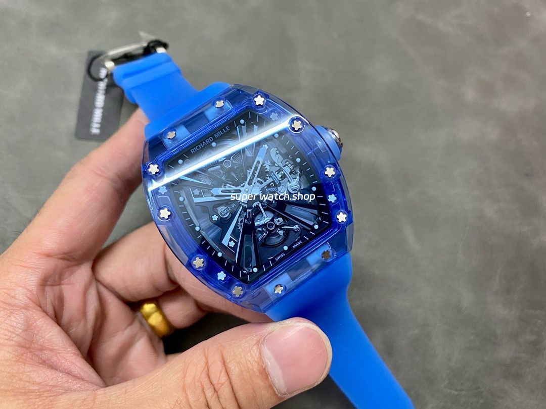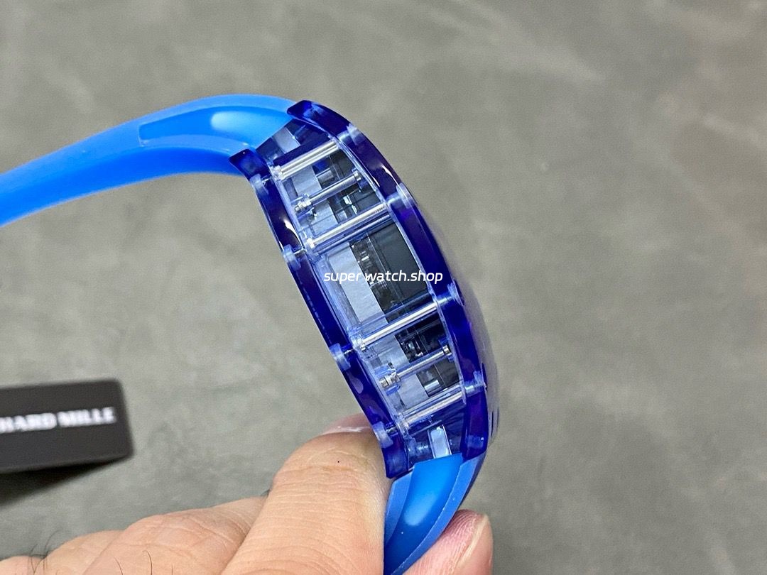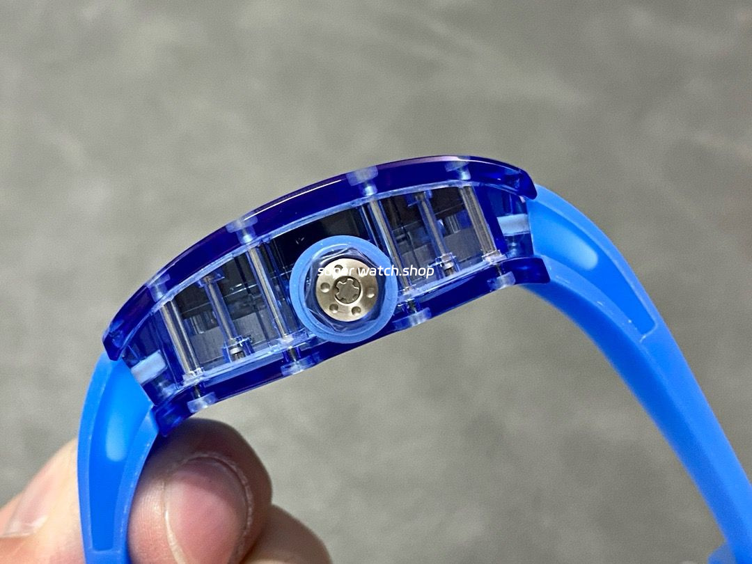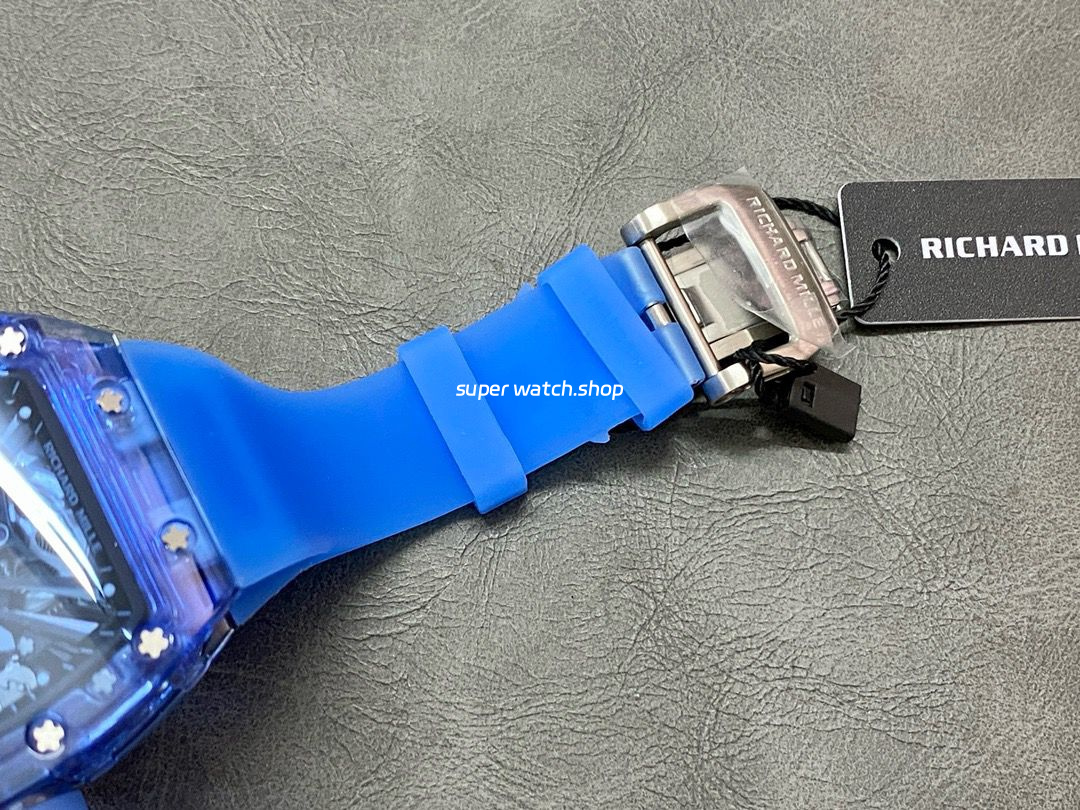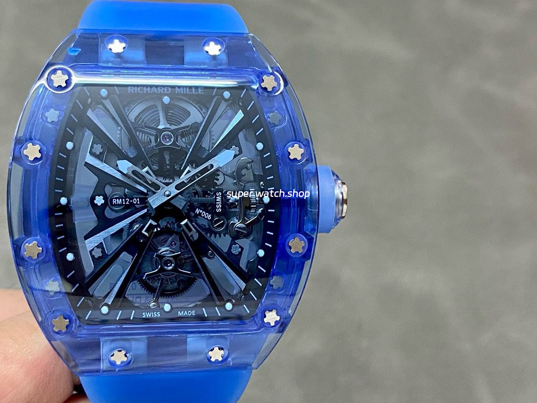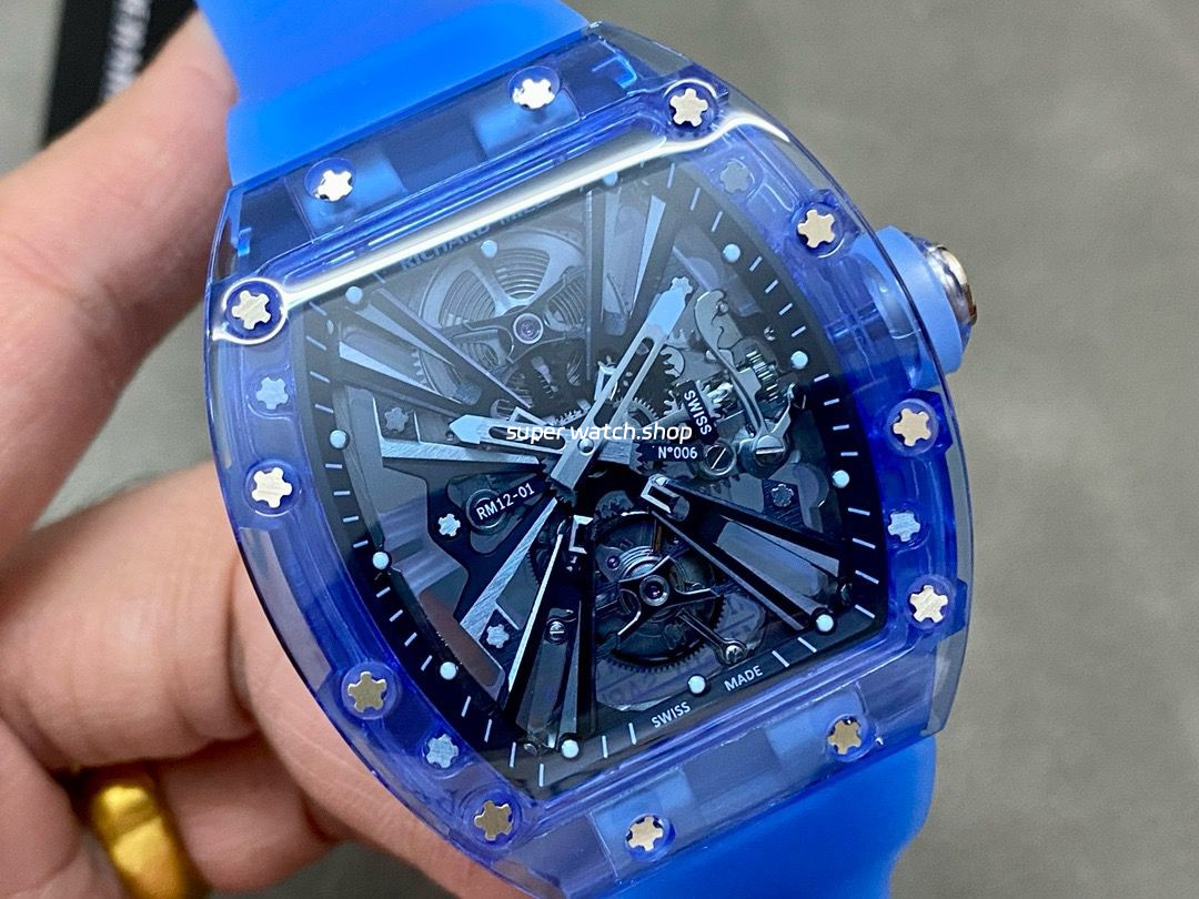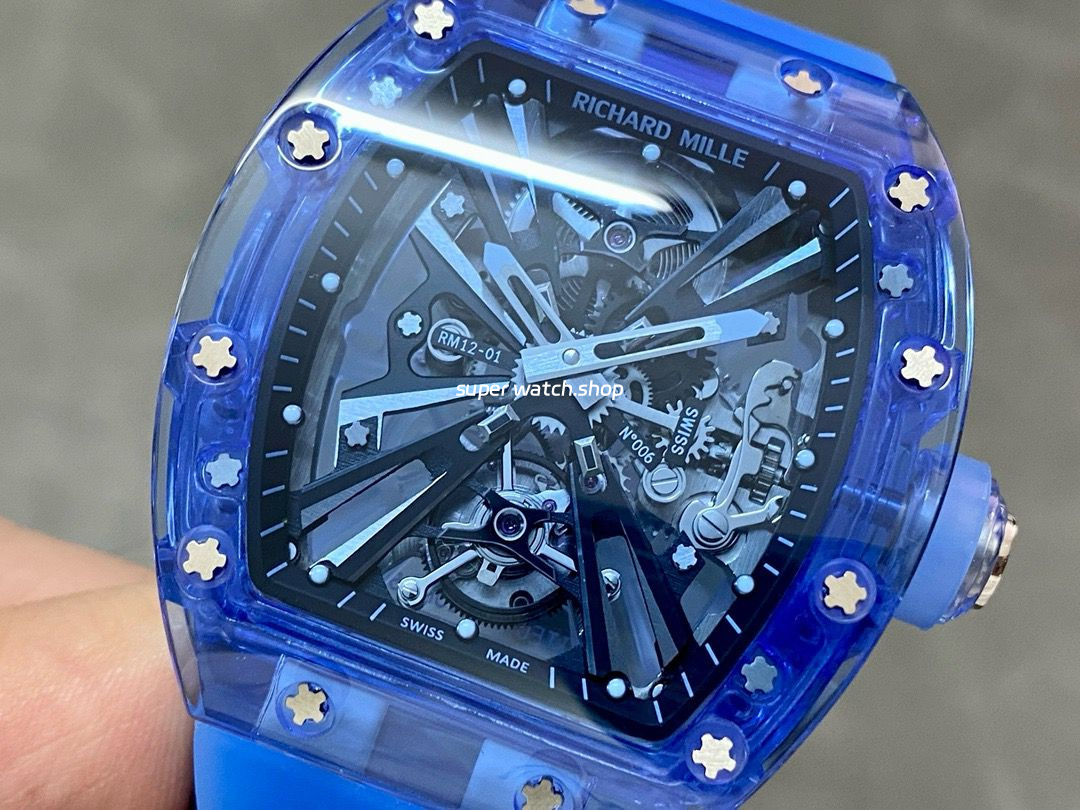 RM Factory Richard Mille RM 12-01 39mm Blue Crystal Blue Rubber Strap Skeletonized Black Dial