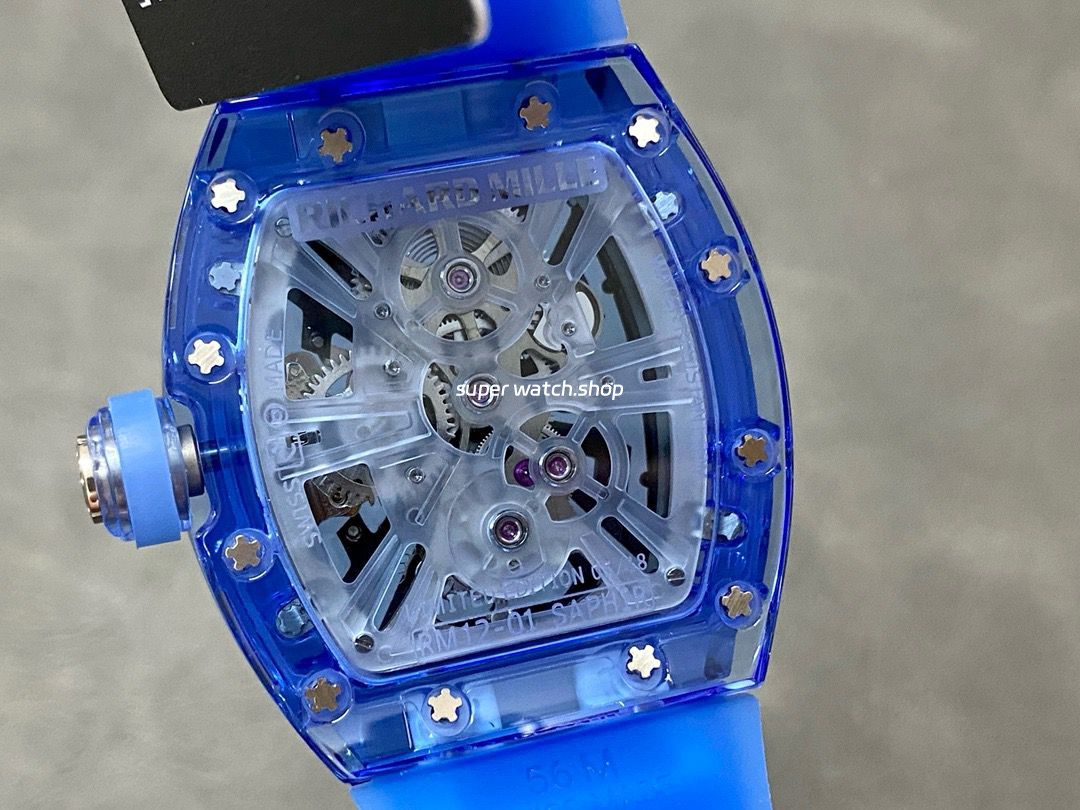 Realizing the integration of material innovation and watch architecture, the legendary RM12-01 tourbillon sapphire transparent version was launched