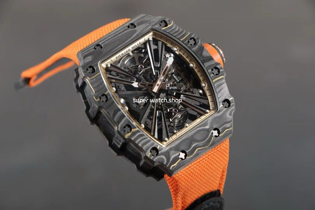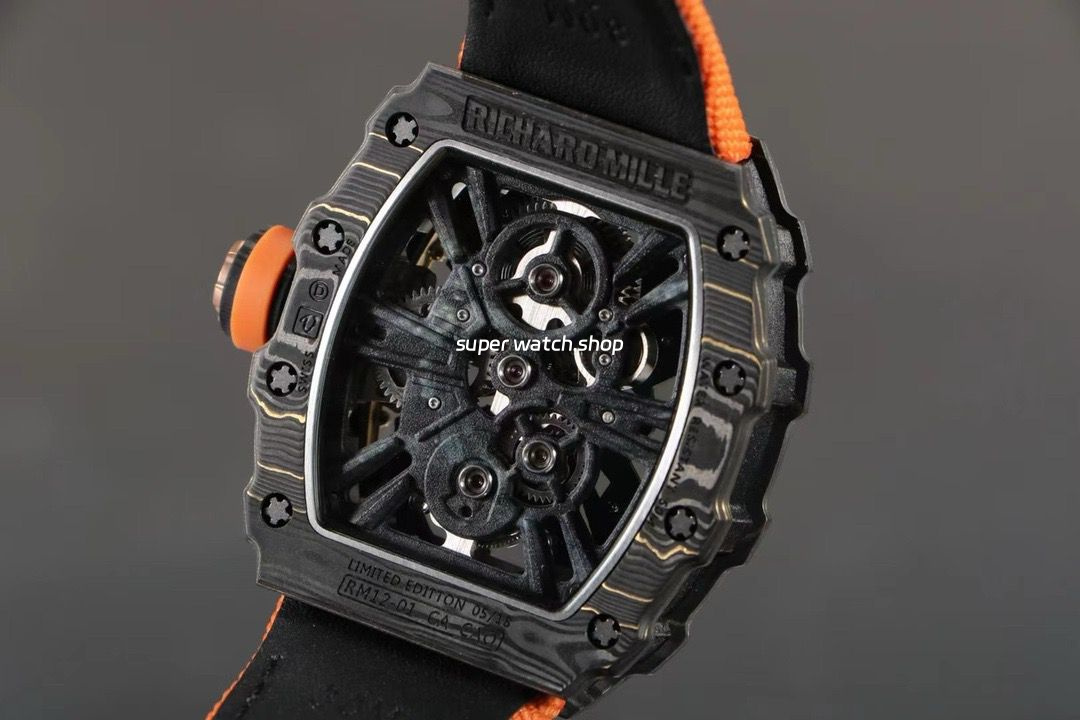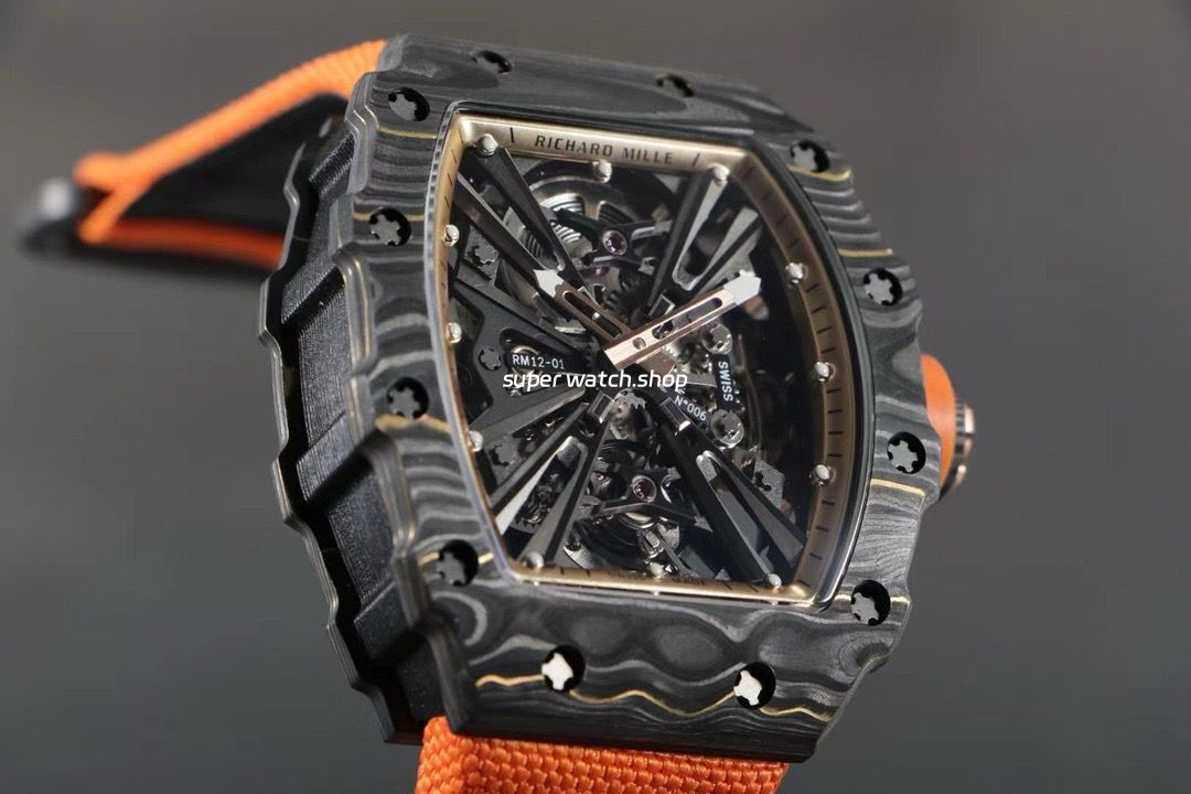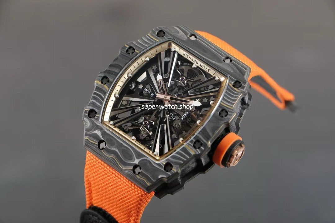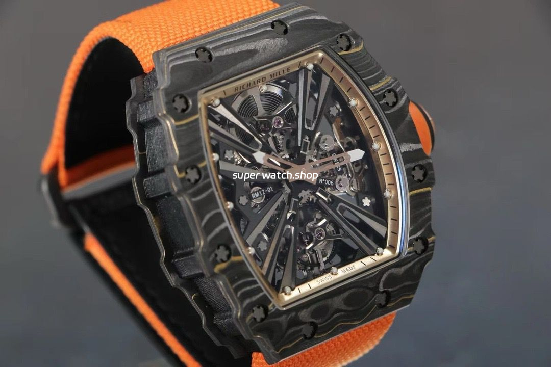 RM Factory Richard Mille RM12-01 39mm Carbon Fiber Orange Canvas Strap Skeletonized Rose Gold Dial