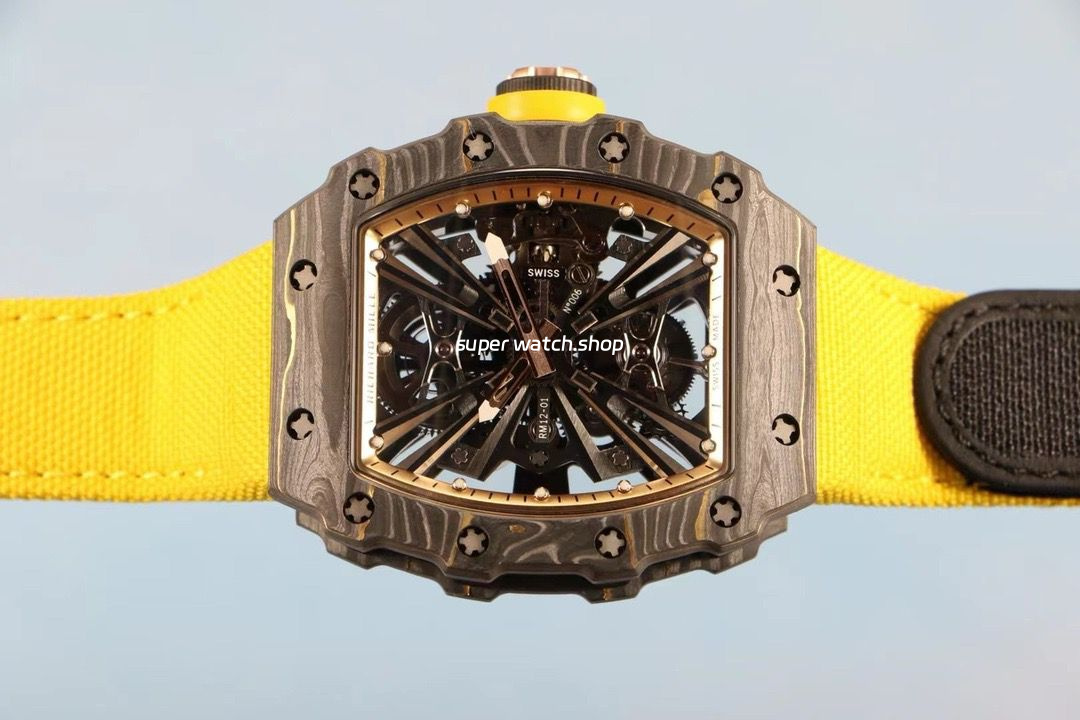 RM Factory Richard Mille RM12-01 39mm Carbon Fiber Yellow Canvas Strap Skeletonized Rose Gold Dial