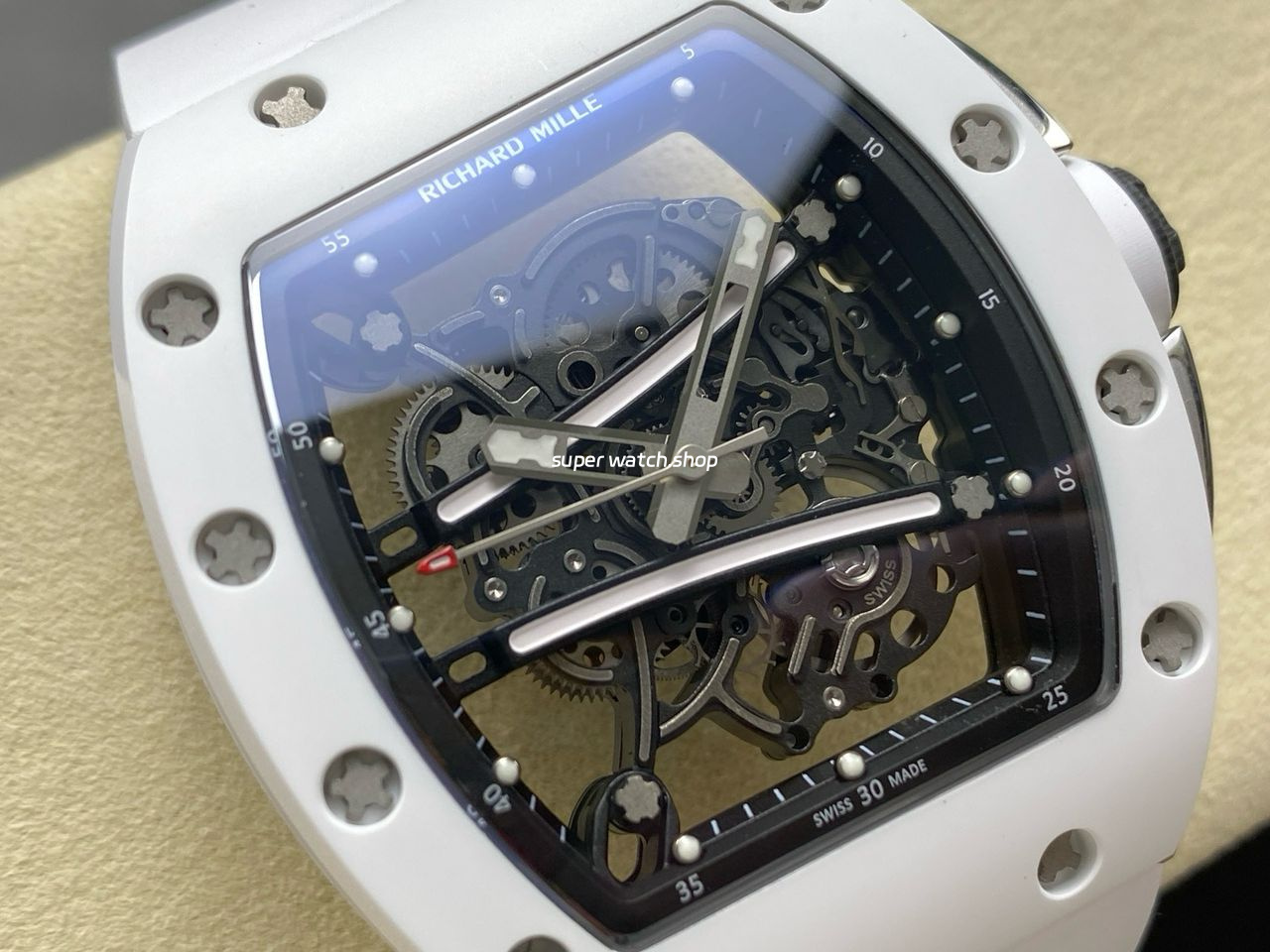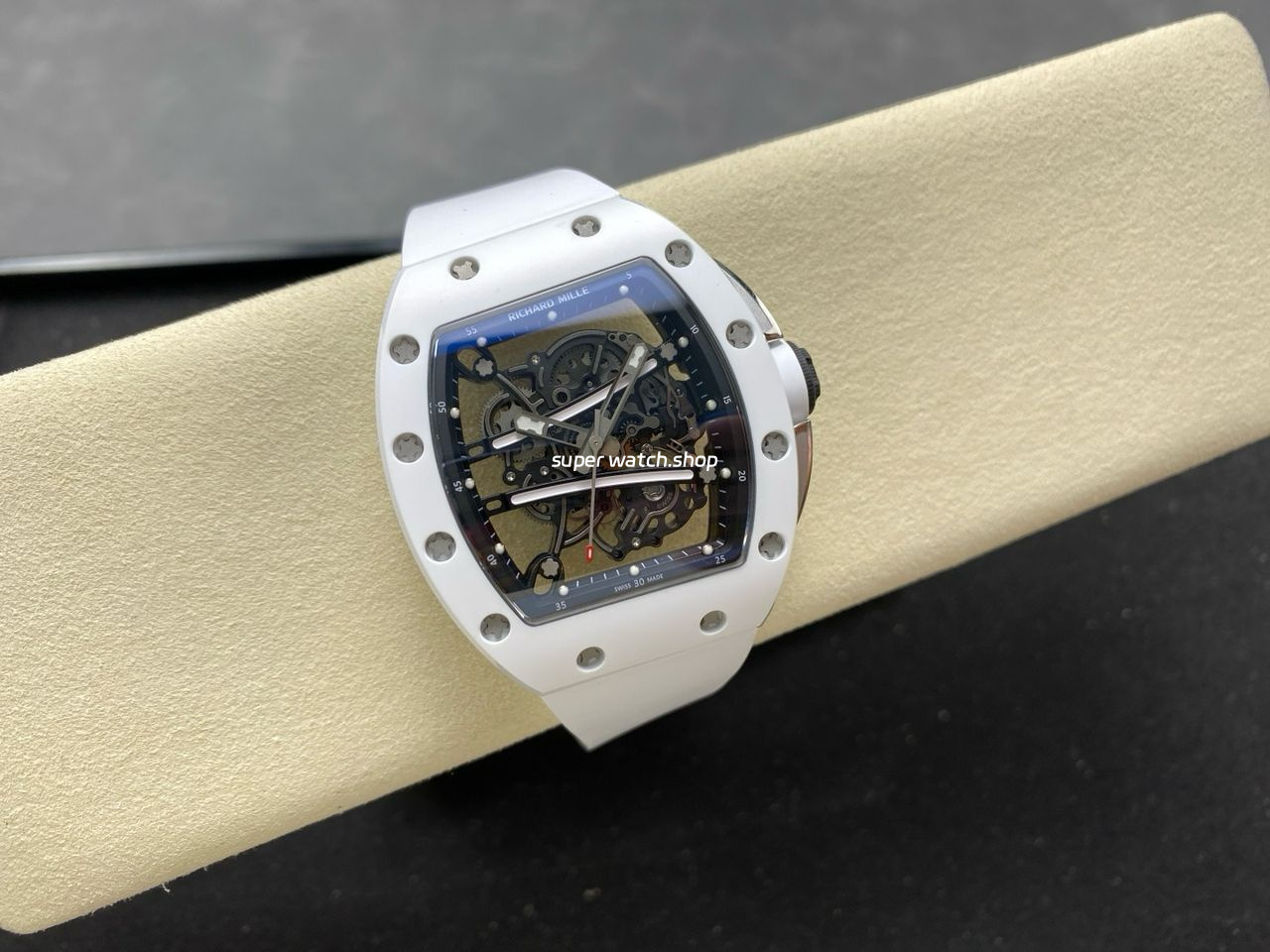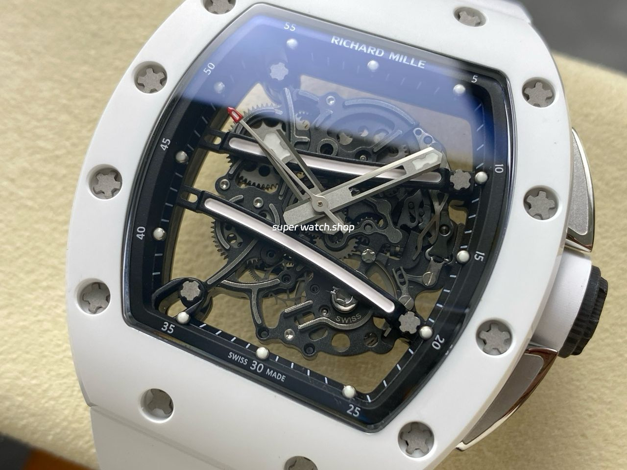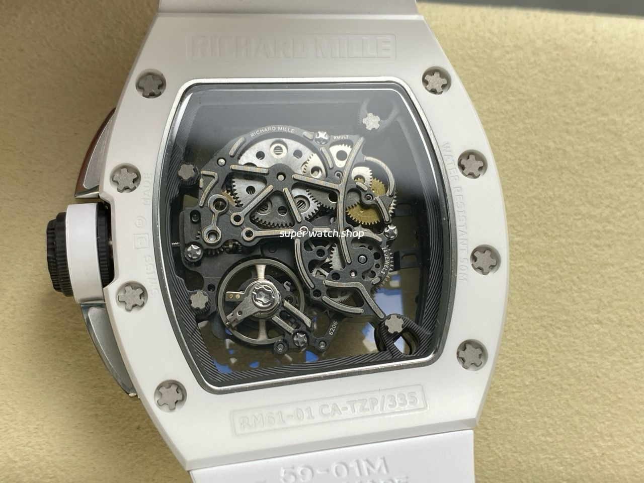 RM Factory Richard Mille RM61-01 42.7mm Carbon Fiber White Rubber Strap Black Skeleton Dial