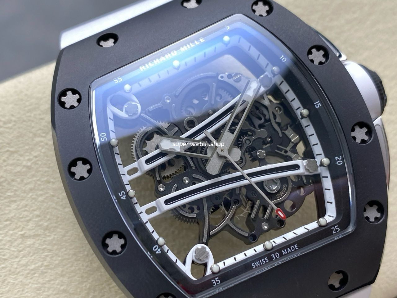 RM Factory Richard Mille RM61-01 42.7mm Carbon Fiber White Rubber Strap White Skeleton Dial