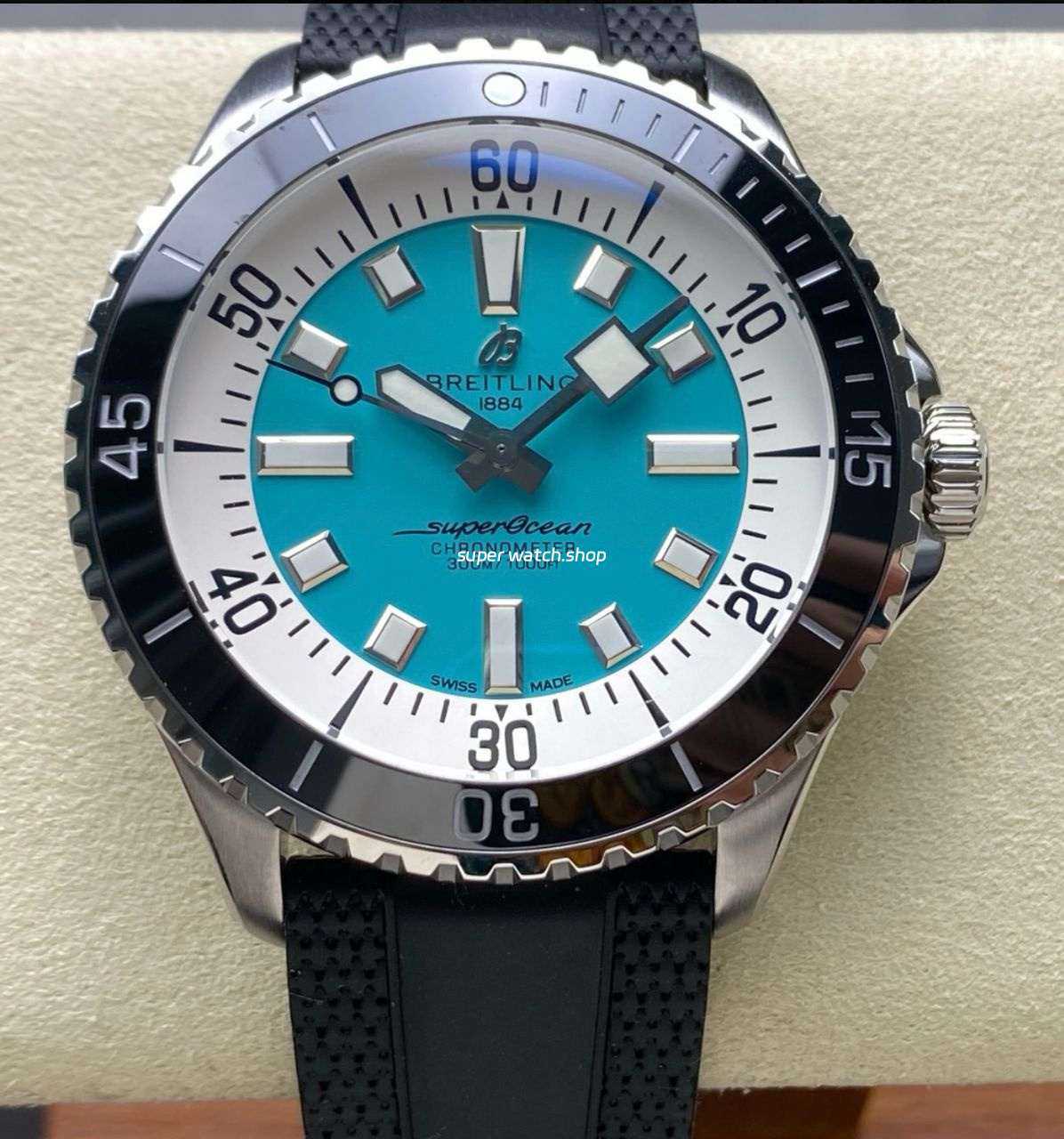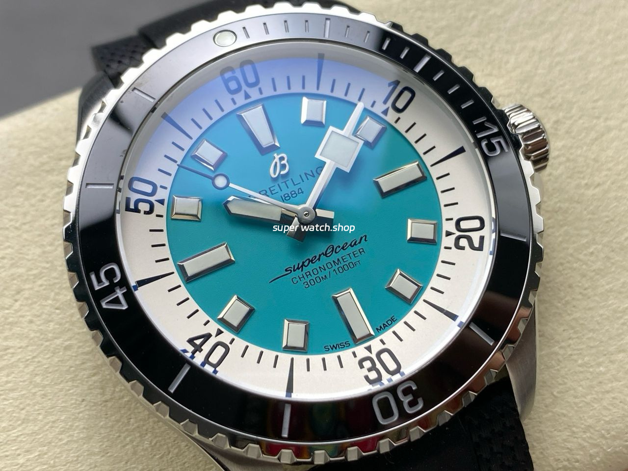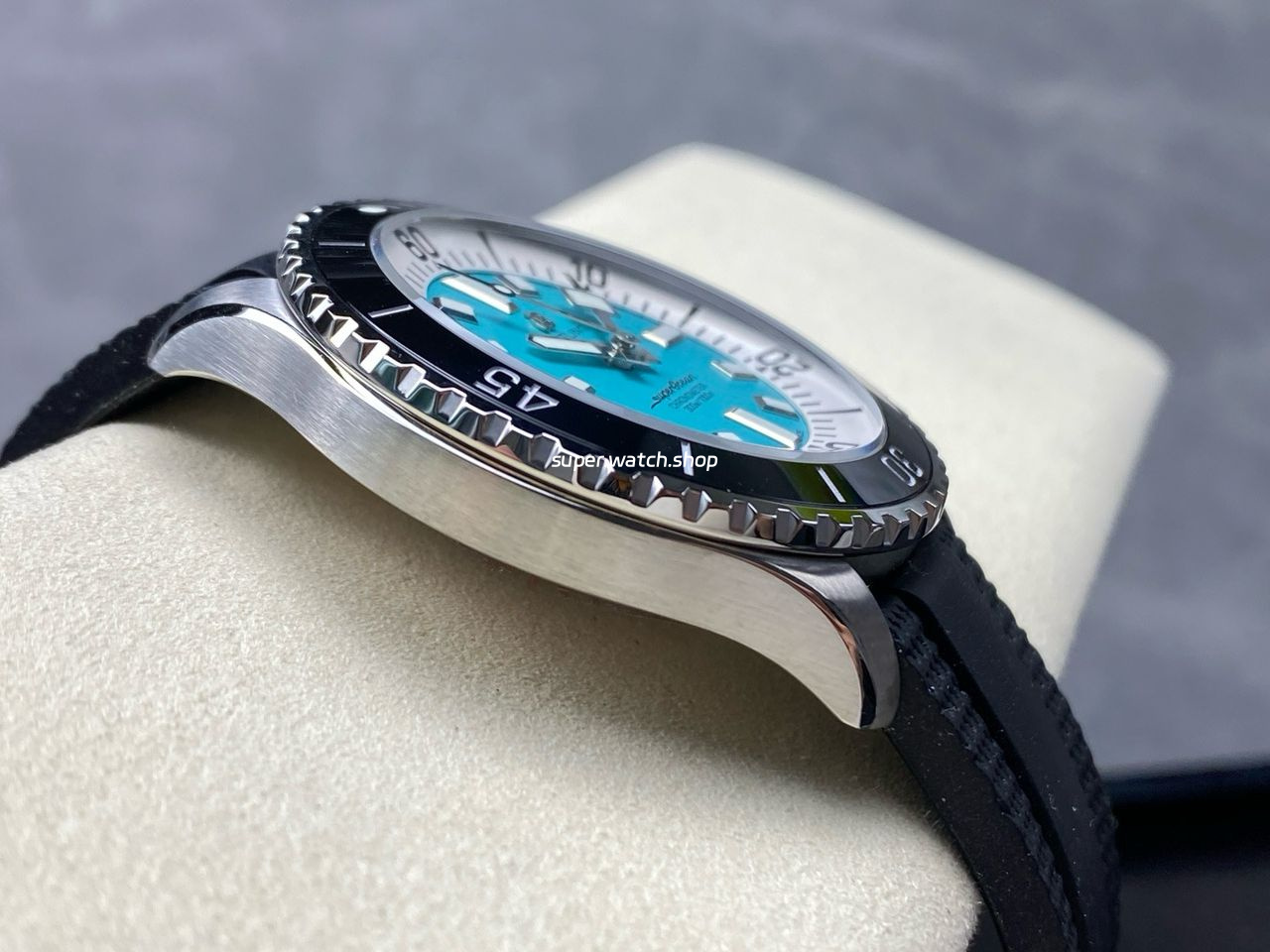 TF Factory Breitling Superocean A17376211L2S1 44mm Black Bezel Steel Black Rubber Strap Light Blue Dial