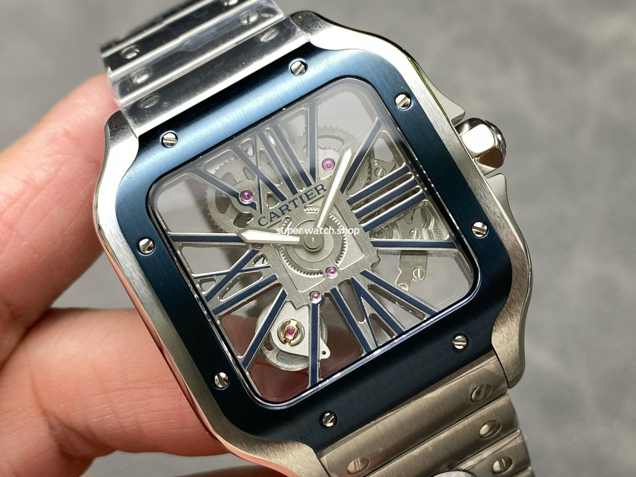 This THB factory Cartier Santos Skeleton Watch exemplifies high-end replica standards, with a stable movement, skeleton craftsmanship, and quick-release strap design. It is an ideal choice for watch enthusiasts who prioritize both quality and aesthetics.