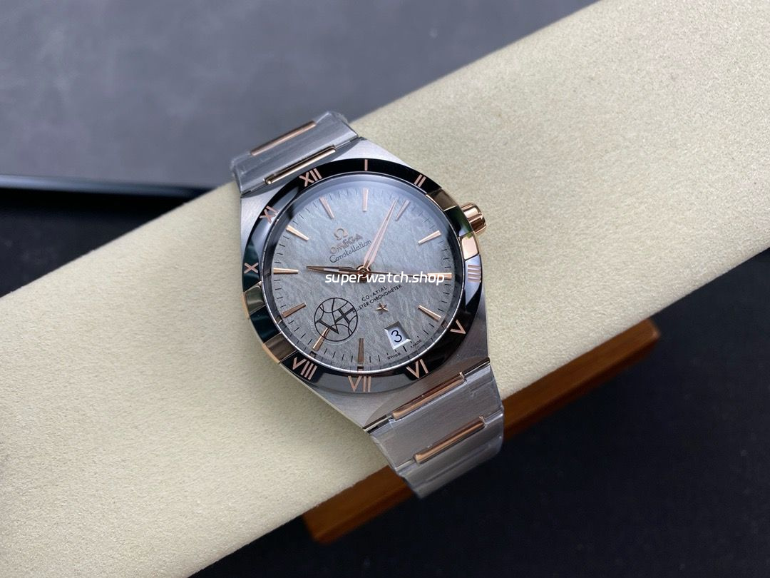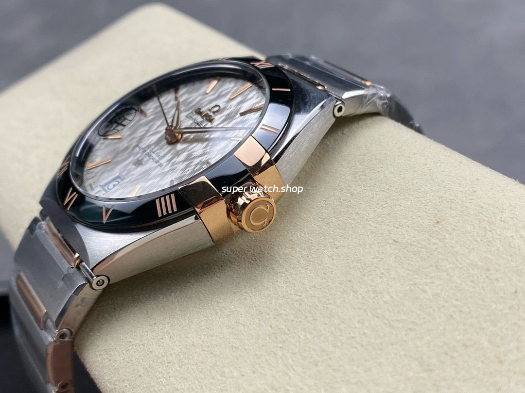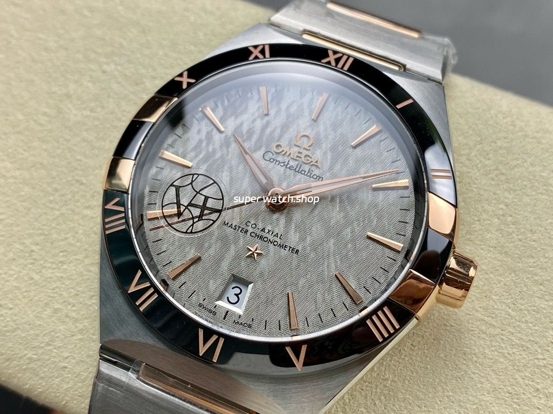 V+ Factory Omega Constellation 131.23.41.21.06.001 41mm Black Ceramic Bezel Half Rose Gold Steel Grey Dial