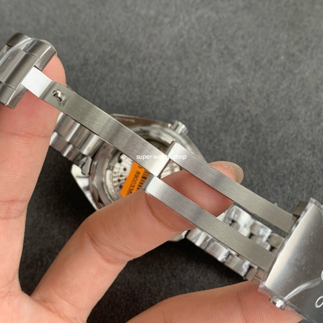 •Screw-Down Crown: Laser-engraved Omega logo with clean-cut threads, ensuring secure operation and water resistance.
