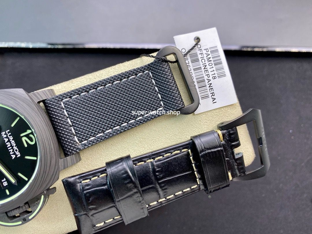 VS Factory once again delivers a stunning creation with the PAM1118 Carbon Fiber Watch, combining futuristic materials, dazzling lume, and Panerais iconic military design.