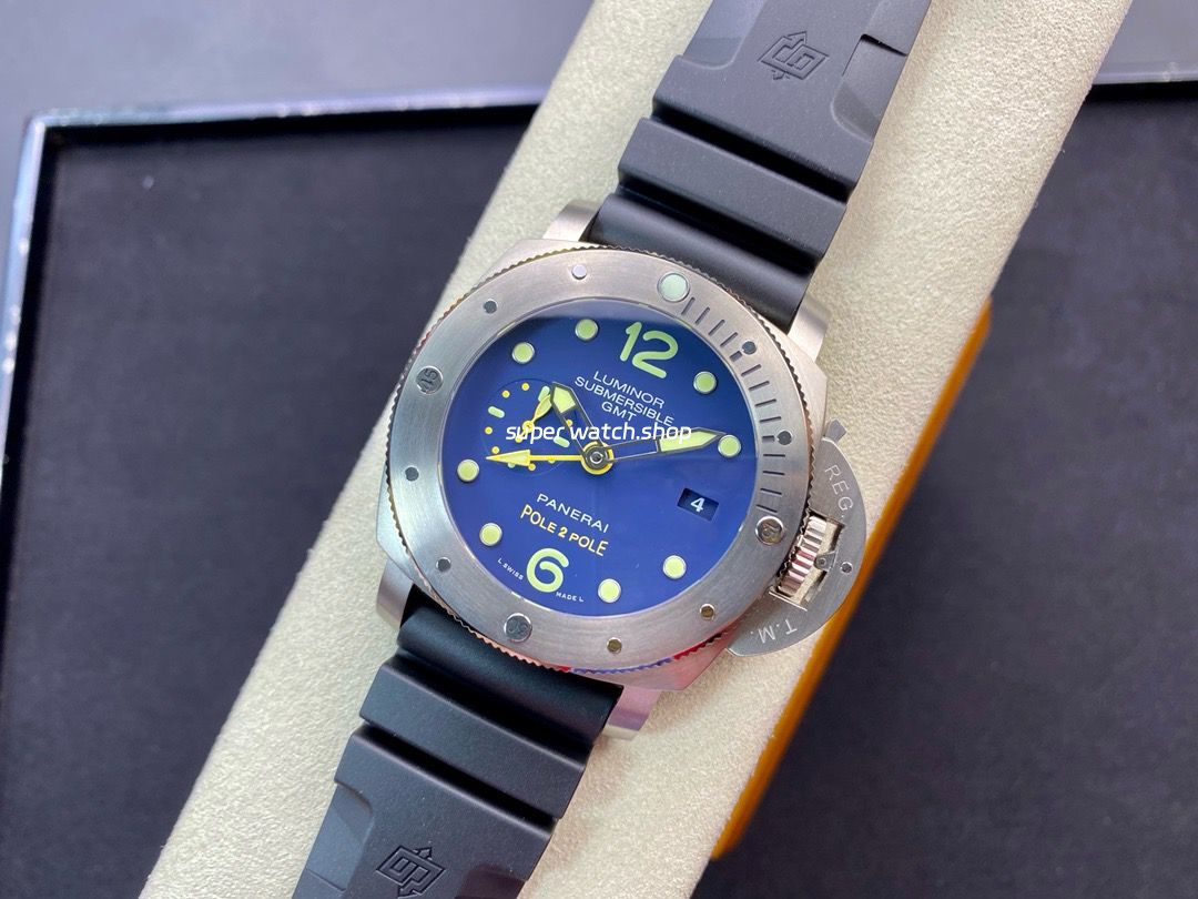 The VS Factorys meticulously crafted replica of the PAM719 is a GMT timepiece that combines practical functionality with striking aesthetics. Featuring the classic Luminor 1950 case and a dual time zone display, its tailored for global travelers.