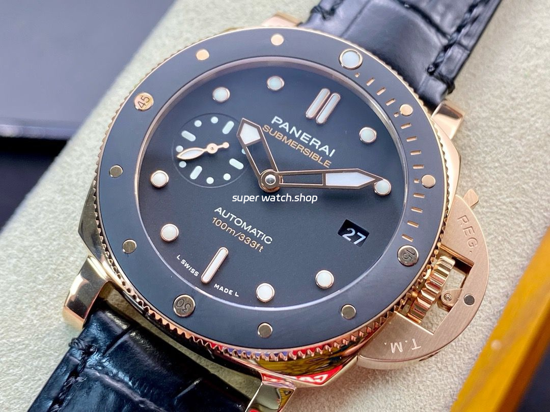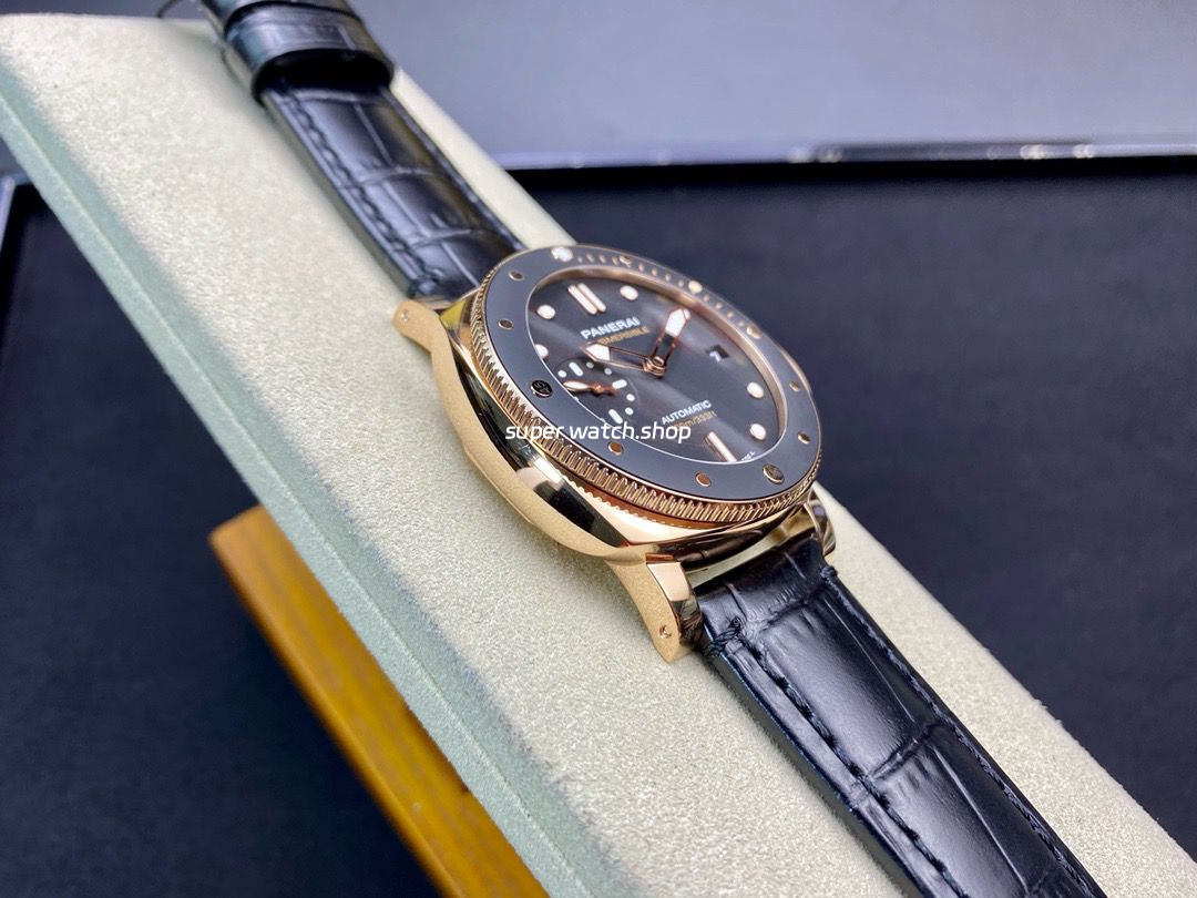 VS Factory Panerai Submersible PAM00974 42mm Rose gold Leather Strap Black Dial