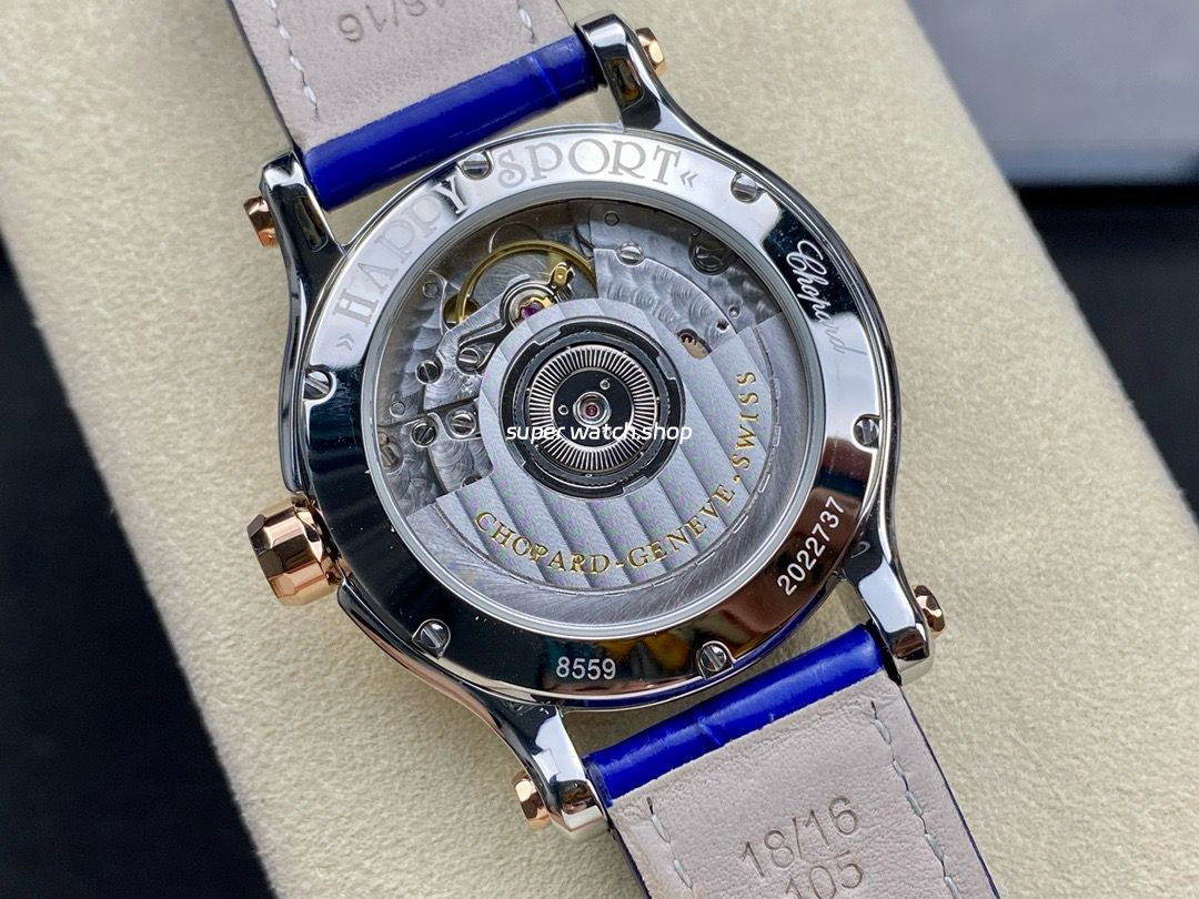 YF Factory Chopard Happy Sport 278578-6003 36mm Steel Leather Strap Roman Numerals Blue Dial