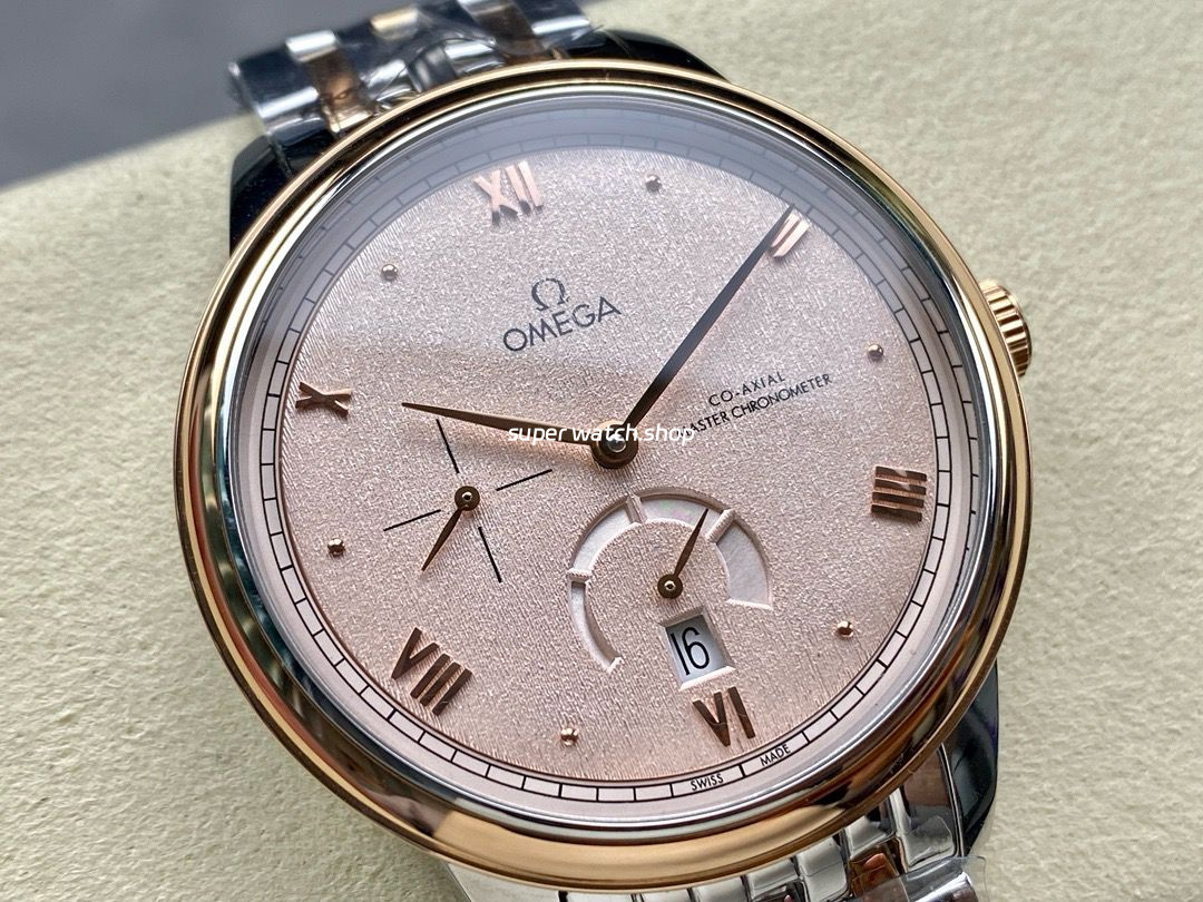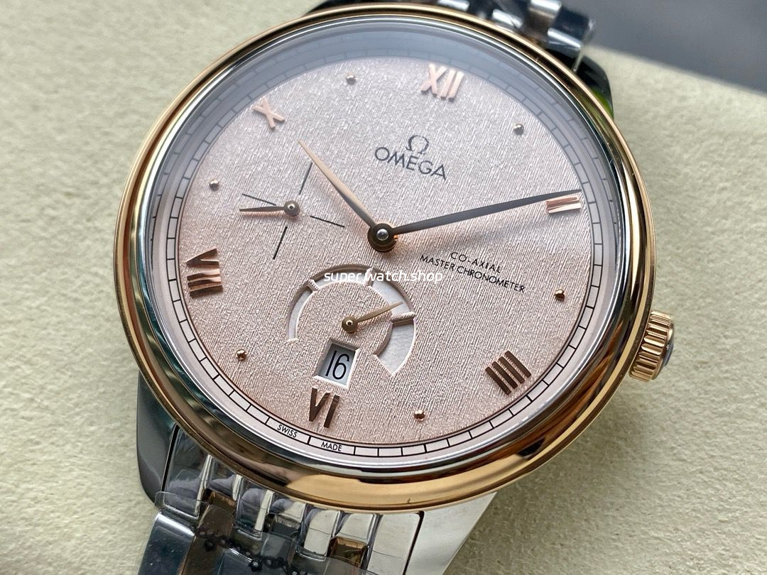 This upgraded model is based on the Omega De Ville series, featuring a classic 41mm case size that perfectly matches the official specifications, ensuring a comfortable and proportionate fit on the wrist. The dial layout is uniquely crafted: a real-time power reserve indicator at 6 o’clock, and a small seconds sub-dial at 9 o’clock, showcasing the precision and balance of high-end watchmaking artistry.
