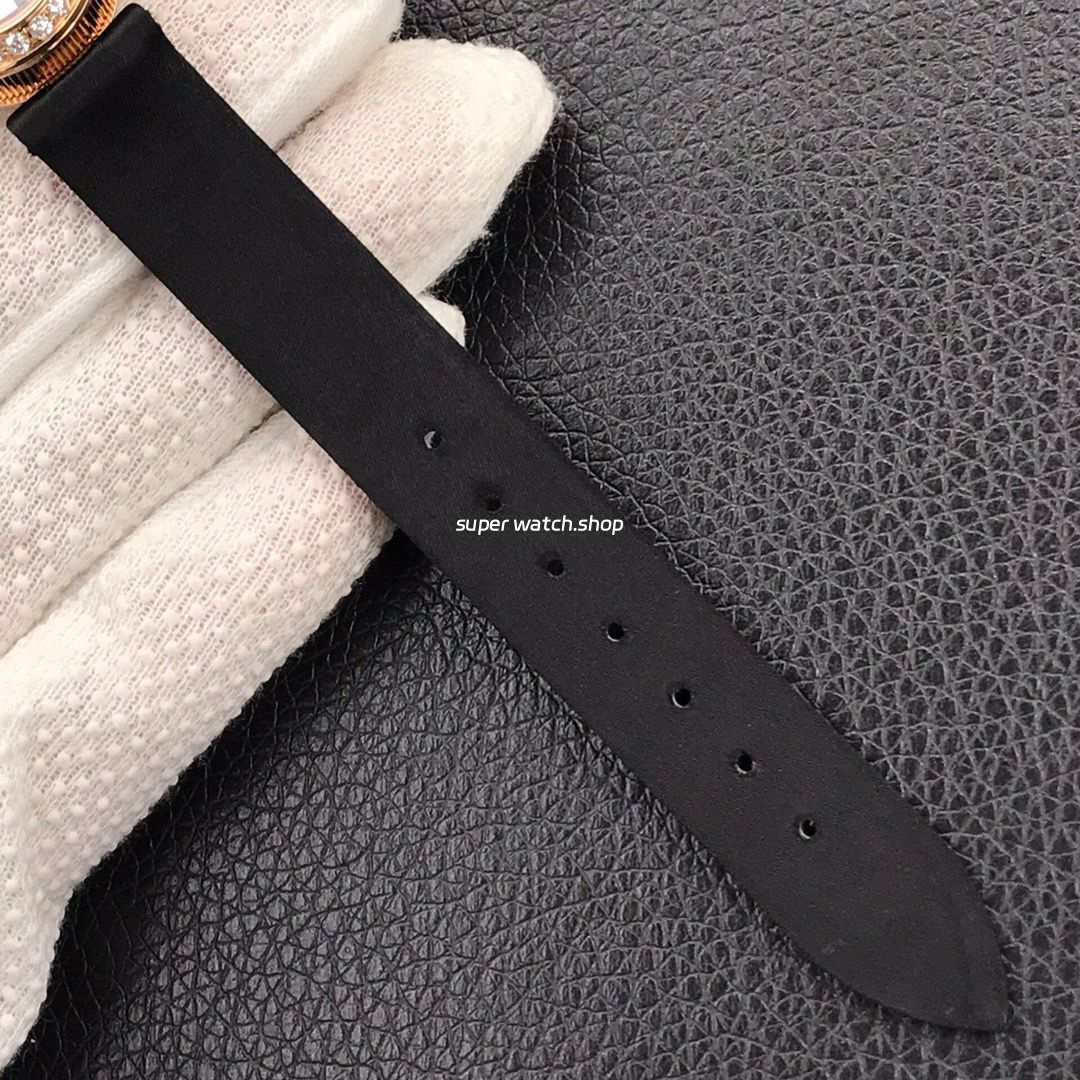 Silk-wrapped lambskin leather strap, offering a smooth and delicate feel for ultimate comfort.