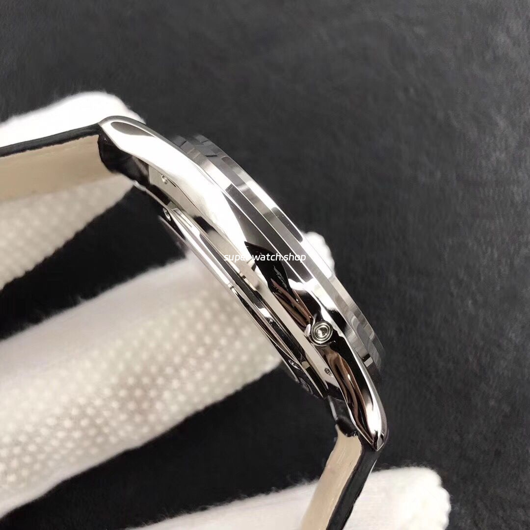 With a 39MM case diameter matching the original specifications, this watch features a streamlined stainless steel case that has been meticulously polished for a smooth, refined finish. Functional pushers on both sides of the case allow for easy adjustment of the moonphase and calendar functions. The engraved logo on the crown is sharply defined, reflecting precision craftsmanship.